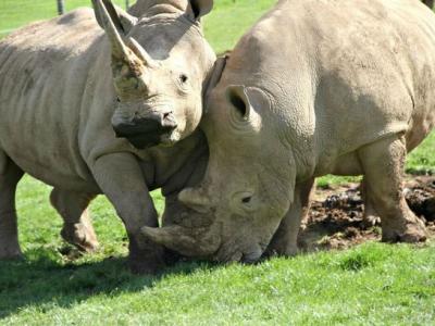 英国诺亚方舟动物园将对一对珍稀白犀牛使