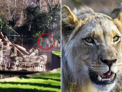 西班牙男子闯进巴塞隆拿动物园的狮子园