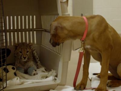 美国动物园小猎豹要进行手术 好友罗德西亚背脊犬在一旁静静守候 (神秘的地球报...