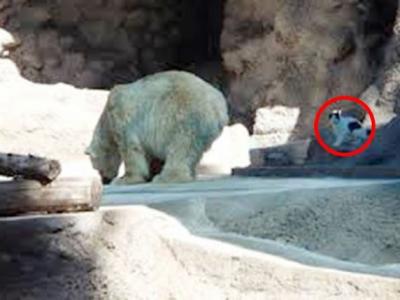 阿根廷门多萨动物园“全球最寂寞”的北极熊交流浪猫新朋友 (神秘的地球报道)阿...