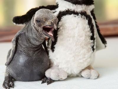园方人员为小企鹅找来一只企鹅毛公仔作伴 (神秘的地球报道)英国格洛斯特郡一个...