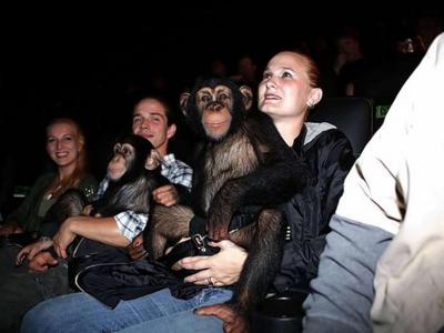 美国动物园黑猩猩观看《猩球崛起》竖起大