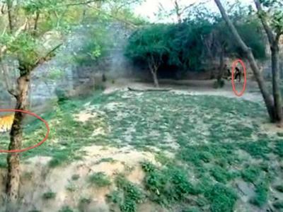 印度瓜廖尔动物园一名23岁学生跳入虎舍挑战两只老虎最后毫发未伤逃出 ...