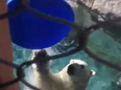 动物园北极熊帮游客捡飞盘 (神秘的地球)据ETtoday:北极熊有多聪明呢?这只养...