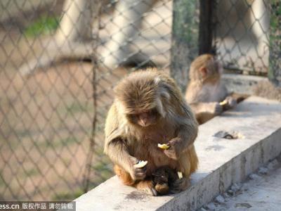 山东济南狝猴园一只母猴难产抱着幼猴尸体不离不弃(图片:东方IC) (神秘的地...