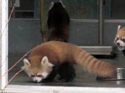 日本一只红熊猫被饲养员的突然出现吓翻 日本一只红熊猫被饲养员的突然出现吓翻...