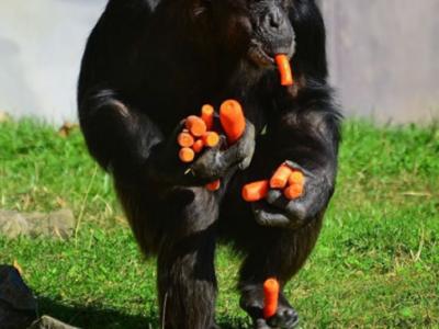 德国动物园一头黑猩猩抢胡萝卜