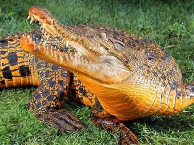 澳大利亚动物园惊现一条橙色鳄鱼,专家解释可能是水中某物质附着在鳄鱼身体上干燥...