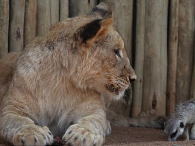 被母亲遗弃小雌狮与海岛猫鼬 被母亲遗弃小雌狮与海岛猫鼬 被母亲遗弃小雌狮...