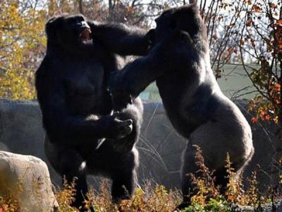 美国动物园年轻大猩猩为争夺统治地位和银