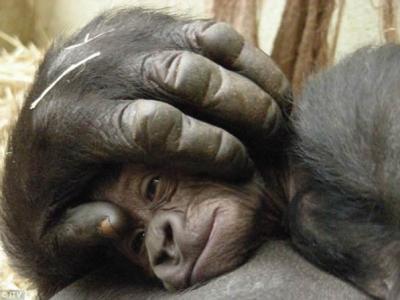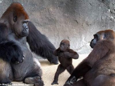 美国动物园大猩猩模仿父亲捶打胸部