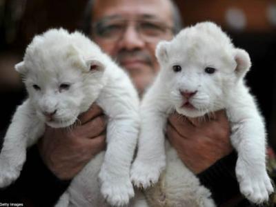 德国野生动物园白狮剖腹产下罕见双胞胎