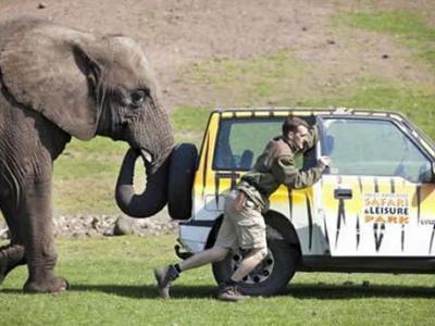 英国动物园大象帮忙推车 日前,在英国西米德兰野生动物园,上演了令人惊奇而...