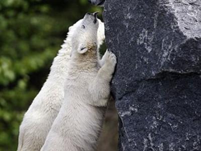 北极熊宝宝向母亲索吻
