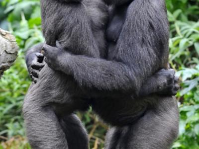 两只大猩猩初次见面拥抱示好