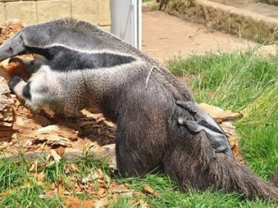 英国食蚁兽宝宝出生后一直悬在母亲尾巴