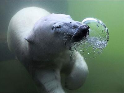 动物园北极熊水下吐泡泡 一名德国退休医生在该国盖尔森基兴动物园内捕捉到了...