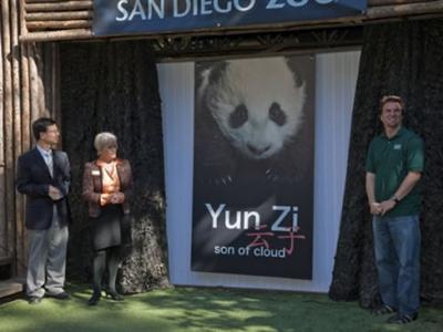 11月17日,美国加利福尼亚州圣迭戈动物园举行仪式,为3个多月前在该动物园出生的...