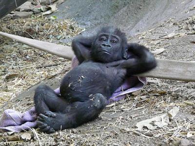 加拿大动物园小猩猩的雷人表情 “耶婉达”的父亲卡金加细心地照看女儿 加拿大...