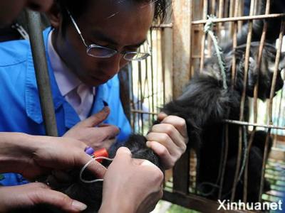 4月20日,云南野生动物园的工作人员为一只东北虎植入“电子身份证”。 20日上午...