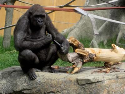 加拿大动物园里一只猩猩玩弄小刀 据英国媒体报道,近日,有游客在加拿大卡尔...