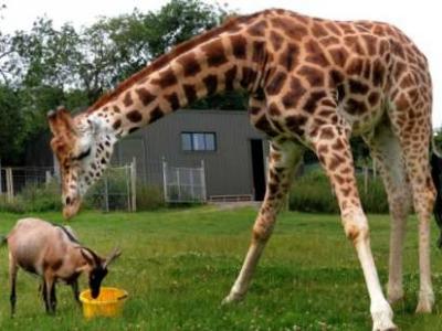 长颈鹿杰拉尔德和山羊艾迪都生活在英国布里斯托尔诺亚方舟动物园内 动物园的管...
