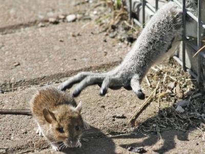 英国动物园饥饿狐猴伸手抓老鼠 这只老鼠眼看就要成为狐猴的美味午饭 据英...