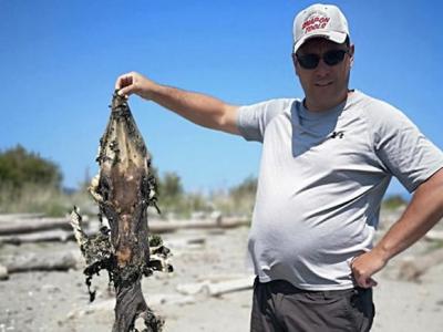 英国德文郡男子在海滩上发现神秘动物遗骸