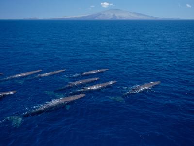 雌性抹香鲸和幼鲸在加拉巴哥群岛的平塔岛外海优游。 PHOTOGRAPH BY FLIP NICKLEN...