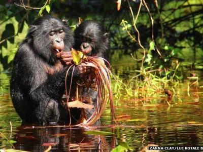 生活在野外的倭黑猩猩 倭黑猩猩的交流 灵长类动物语言也很复杂 (神秘的地...