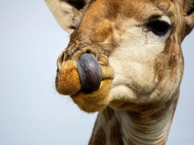 南非的一只长颈鹿把鼻涕从鼻孔中舔出来。Photograph by Richard du Toit, Corbis...