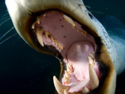 保罗.尼克兰在南极成功拍到这张豹斑海豹张开大嘴、露出牙齿的照片,靠的是耐心,...