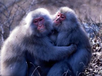 金华山岛的猴子见到对方时会面对面拥抱 屋久岛的猴子则会从侧面和后面去拥抱 ...