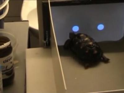 英国研究团队训练象龟玩触控萤幕,希望未来可以让它们用iPad与人交流 萤幕上显...