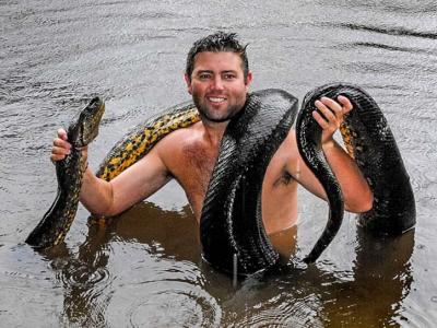 加兰特曾与一条巨大绿蟒相遇,但幸运逃生。 美国加州26岁男子福瑞斯特·加兰特...