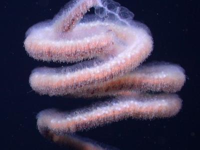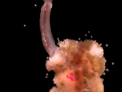 Osedax mucofloris 生活在鲸鱼的骸骨上。 ( 雄虫的阴茎并未入镜。) 摄影: Natur...