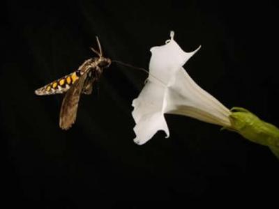 烟草天蛾的飞蛾正在从一朵怀特曼陀罗花中采食花蜜 (神秘的地球报道)据EurekAl...