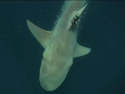 专家在鳍上装上定位装置,监察它们的活动。 (神秘的地球报道)美国迈阿密大学的...