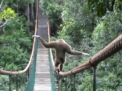南非「Monkey」灵长类保护区走吊桥钢索的长臂猿 猴子惨遭蟒蛇生吞 (神秘的地...