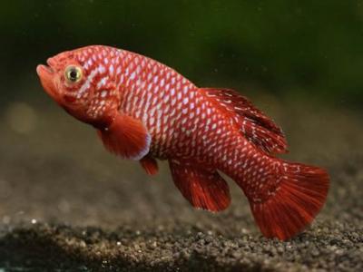 雄性的假鳃鳉。这种体型娇小的非洲鱼类生活在由季节性降雨形成的临时水坑中,因此...
