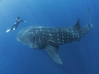 墨西哥海域的一头鲸鲨 根据研究人员跟踪数据发现,鲸鲨,世界上最大的鱼类,会大...