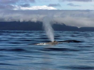 加拿大不列颠哥伦比亚省莫尔兹比港岛的蓝鲸喷口。这些动物的性生活仍然是未解之谜...