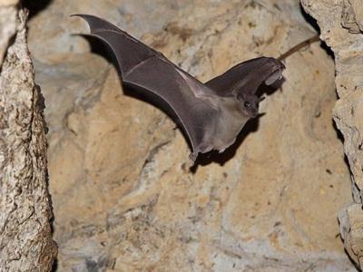 以色列威兹曼科学院的一间实验室中,果蝠在一个宽敞的笼子中绕圈飞行,它们头上的电...