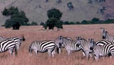 在1987年位于肯亚Maasai Mara保留地的斑马群 在过去的40年中,大象、犀牛和长颈...
