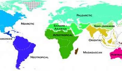 这是一脊椎动物世界的现代地图 一个显示了主要脊椎动物类群是如何在世界各地迁移...