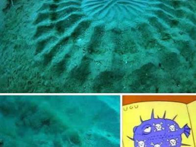 河豚打造海底麦田怪圈 除用于产卵外,鱼类筑巢的目的多是为了吸引潜在伴侣及保护...