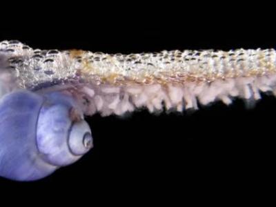 一些蜗牛种群利用粘液包覆空气制造气泡筏,而后借助气泡筏在海水中“冲浪”。它们如...