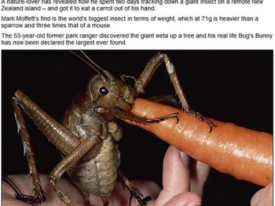 美国自然爱好者在新西兰发现巨沙螽之中的“王者” 美国自然爱好者在新西兰发现...