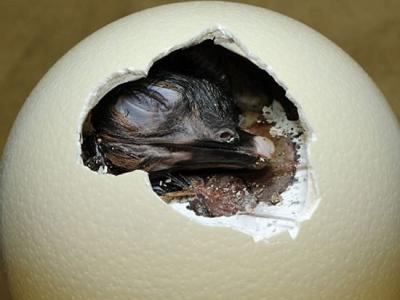 动物在孵化时,最初蛋壳开始裂缝,裂缝越来越大,蜷缩在蛋内的小生命在壳上顶破一个...