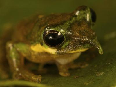 这种长鼻子树蛙是科学界发现的一种全新物种。研究人员在露营地的米袋子上发现这种...